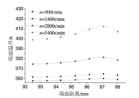 1.熱油泵機械密封轉(zhuǎn)速對熱油泵機械密封端面溫度的影響